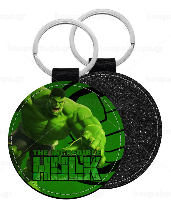 Hulk, Μπρελόκ Δερματίνη, στρογγυλό ΜΑΥΡΟ (5cm)