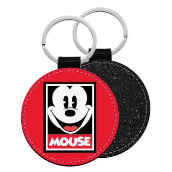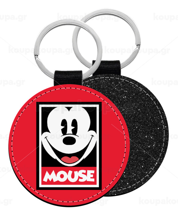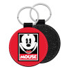Mickey Mouse, Μπρελόκ Δερματίνη, στρογγυλό ΜΑΥΡΟ (5cm)