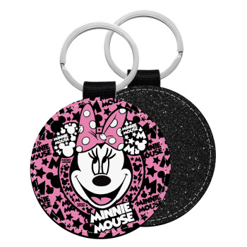Minnie mouse, Μπρελόκ Δερματίνη, στρογγυλό ΜΑΥΡΟ (5cm)