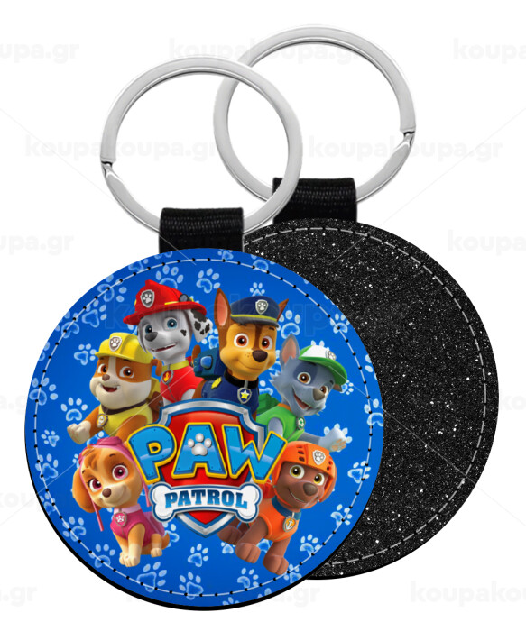 PAW patrol, Μπρελόκ Δερματίνη, στρογγυλό ΜΑΥΡΟ (5cm)