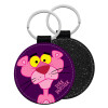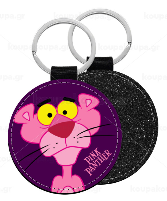 Pink Panther cartoon, Μπρελόκ Δερματίνη, στρογγυλό ΜΑΥΡΟ (5cm)