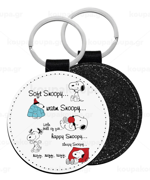 Snoopy manual, Μπρελόκ Δερματίνη, στρογγυλό ΜΑΥΡΟ (5cm)
