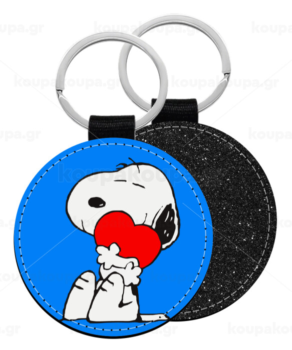 Snoopy, Μπρελόκ Δερματίνη, στρογγυλό ΜΑΥΡΟ (5cm)