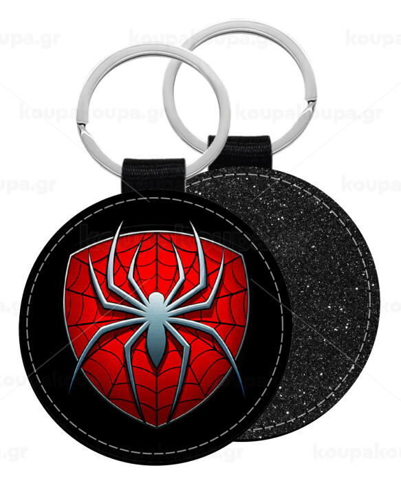 Spider-man, Μπρελόκ Δερματίνη, στρογγυλό ΜΑΥΡΟ (5cm)