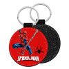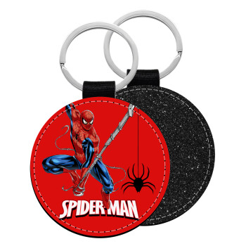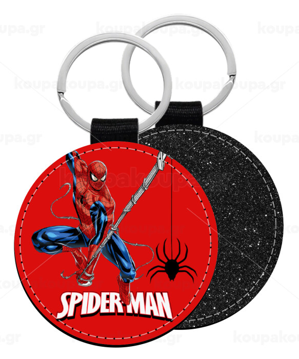 Spiderman fly, Μπρελόκ Δερματίνη, στρογγυλό ΜΑΥΡΟ (5cm)