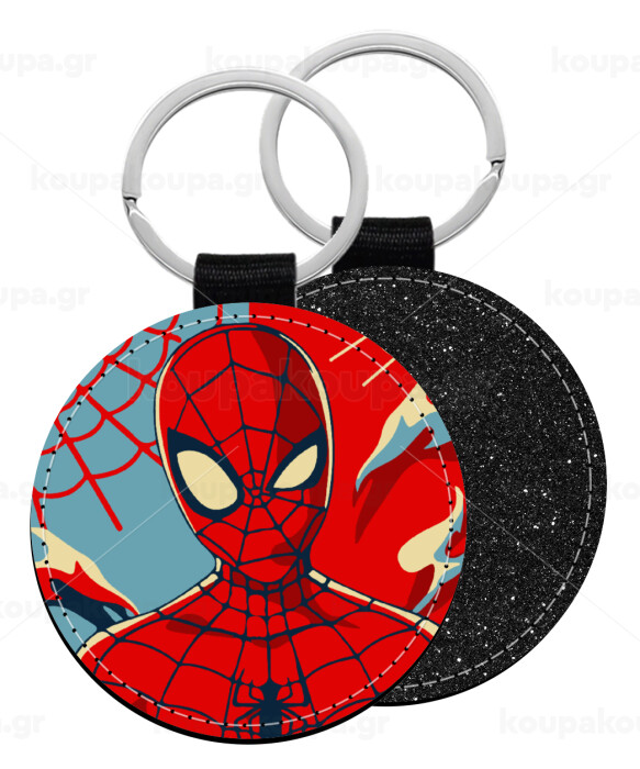Spiderman kid, Μπρελόκ Δερματίνη, στρογγυλό ΜΑΥΡΟ (5cm)