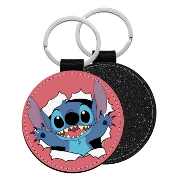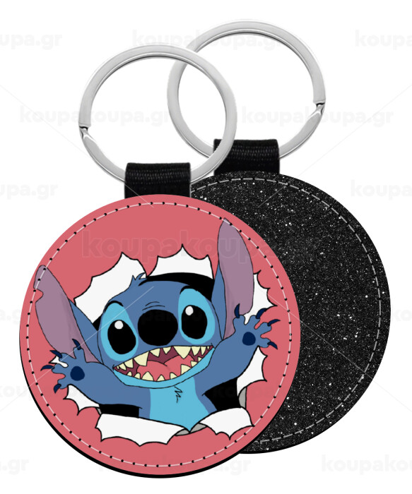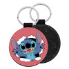 Stitch hello!!!, Μπρελόκ Δερματίνη, στρογγυλό ΜΑΥΡΟ (5cm)