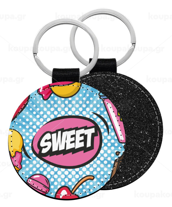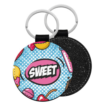 SWEET, Μπρελόκ Δερματίνη, στρογγυλό ΜΑΥΡΟ (5cm)