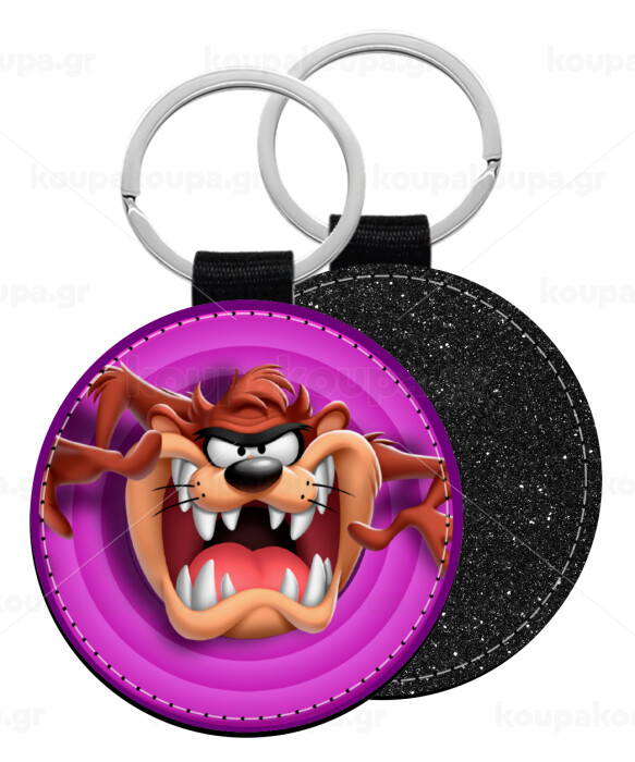 Taz, Μπρελόκ Δερματίνη, στρογγυλό ΜΑΥΡΟ (5cm)