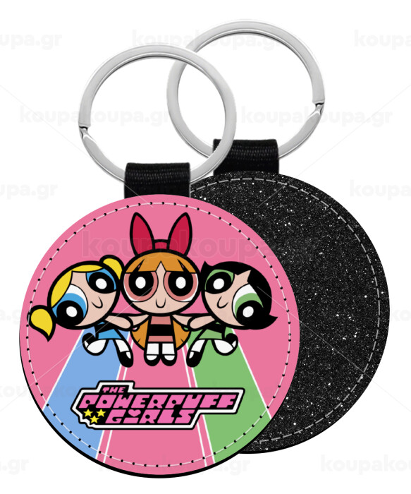 The powerpuff girls , Μπρελόκ Δερματίνη, στρογγυλό ΜΑΥΡΟ (5cm)