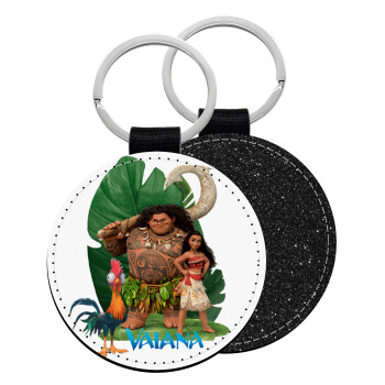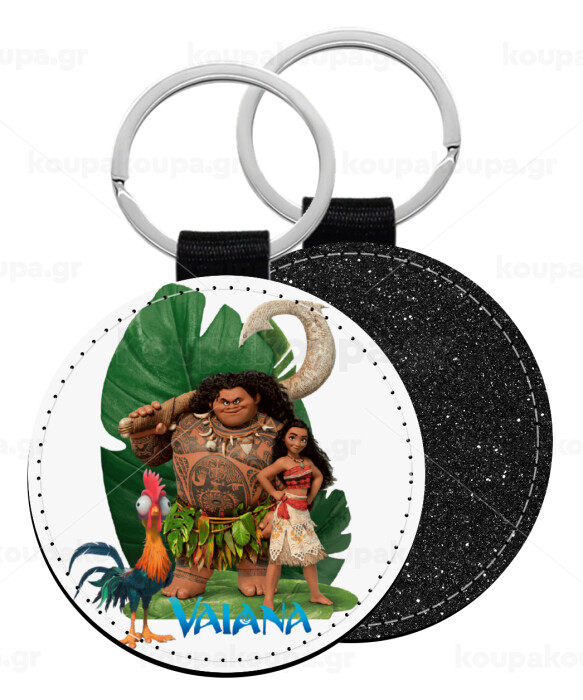 Vaiana, Μπρελόκ Δερματίνη, στρογγυλό ΜΑΥΡΟ (5cm)