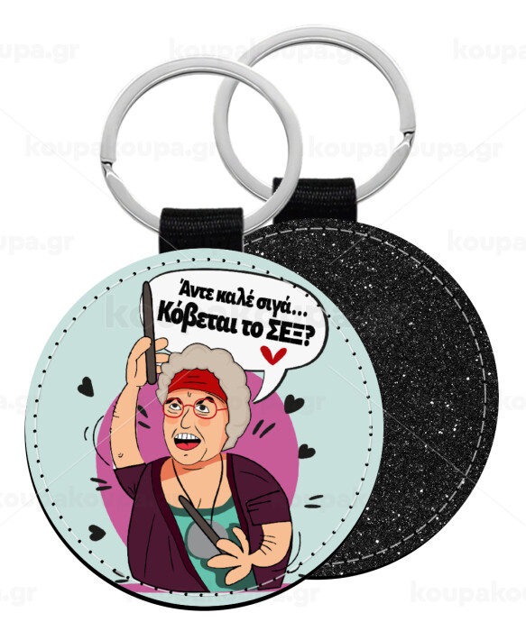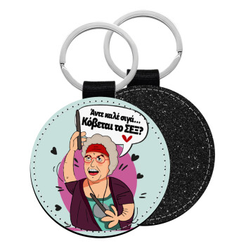 Αντε καλέ, σιγά, κόβεται το σέξ ;, Μπρελόκ Δερματίνη, στρογγυλό ΜΑΥΡΟ (5cm)