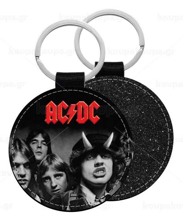 AC/DC angus, Μπρελόκ Δερματίνη, στρογγυλό ΜΑΥΡΟ (5cm)