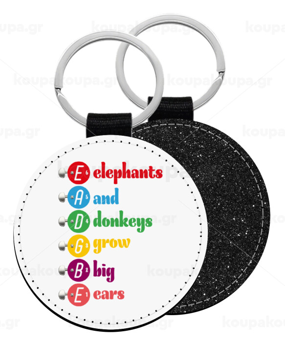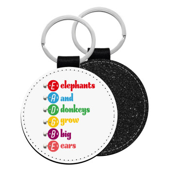 Elephants And Donkeys Grow Big Ears, Μπρελόκ Δερματίνη, στρογγυλό ΜΑΥΡΟ (5cm)