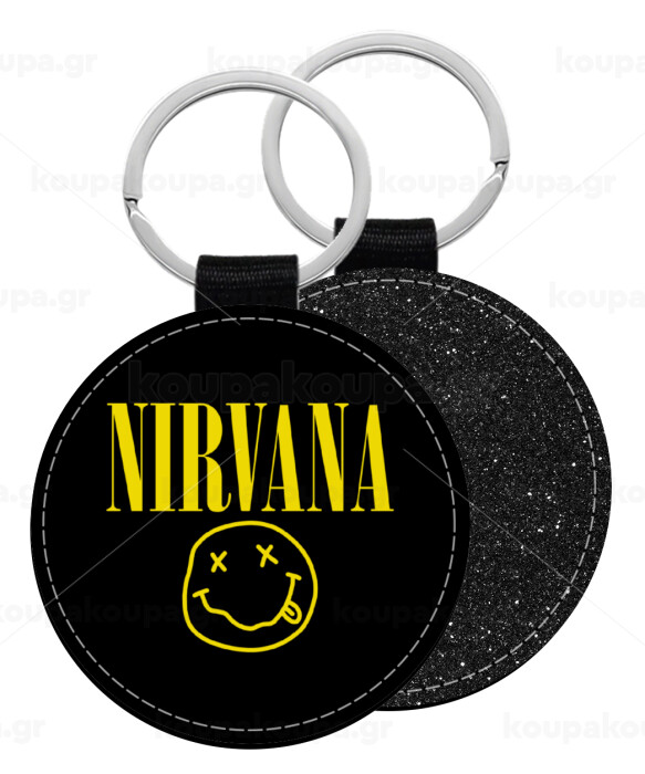 Nirvana, Μπρελόκ Δερματίνη, στρογγυλό ΜΑΥΡΟ (5cm)