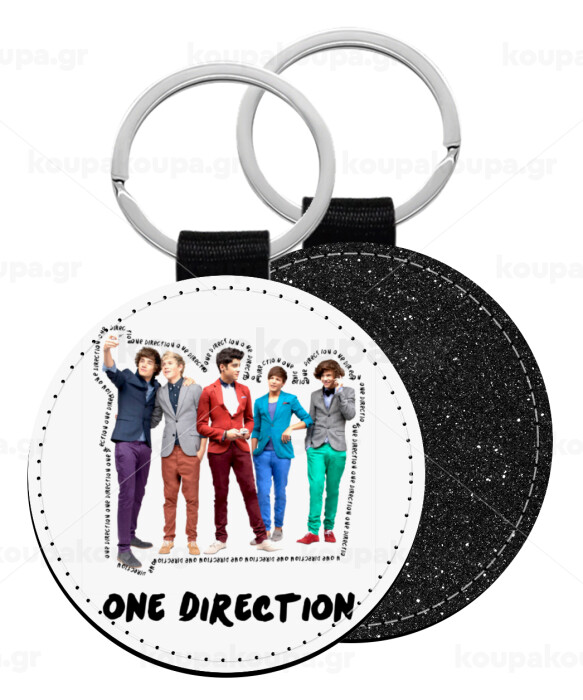 One Direction , Μπρελόκ Δερματίνη, στρογγυλό ΜΑΥΡΟ (5cm)