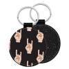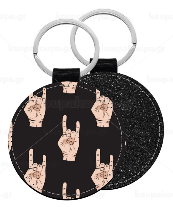Rock hands, Μπρελόκ Δερματίνη, στρογγυλό ΜΑΥΡΟ (5cm)