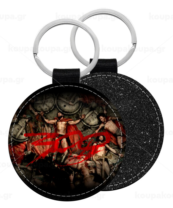 300 the spartans, Μπρελόκ Δερματίνη, στρογγυλό ΜΑΥΡΟ (5cm)