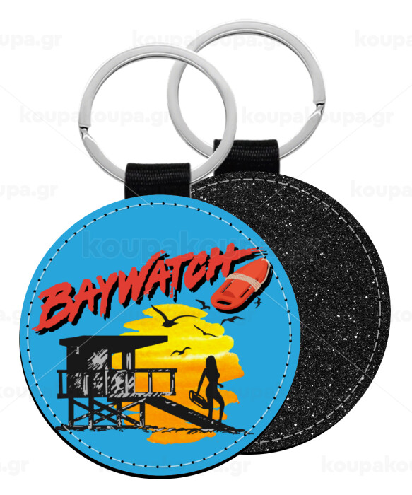 Baywatch, Μπρελόκ Δερματίνη, στρογγυλό ΜΑΥΡΟ (5cm)