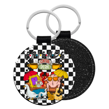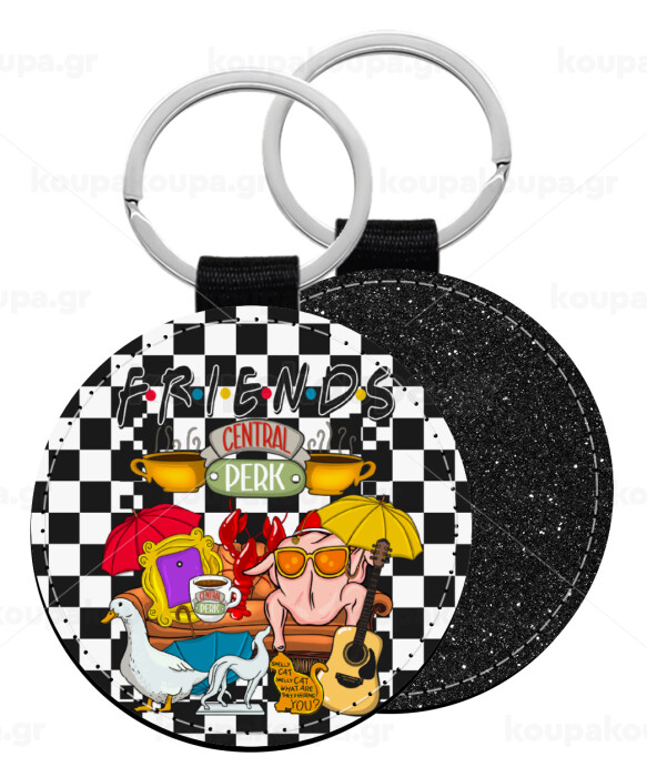 Friends, Μπρελόκ Δερματίνη, στρογγυλό ΜΑΥΡΟ (5cm)