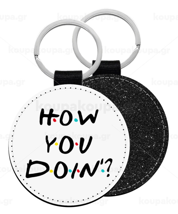 Friends How You Doin'?, Μπρελόκ Δερματίνη, στρογγυλό ΜΑΥΡΟ (5cm)