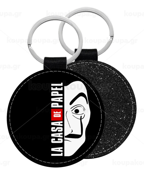 La casa de papel vertical, Μπρελόκ Δερματίνη, στρογγυλό ΜΑΥΡΟ (5cm)