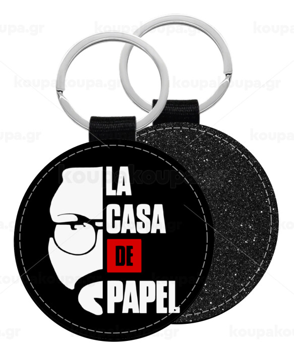 La casa de papel, Μπρελόκ Δερματίνη, στρογγυλό ΜΑΥΡΟ (5cm)