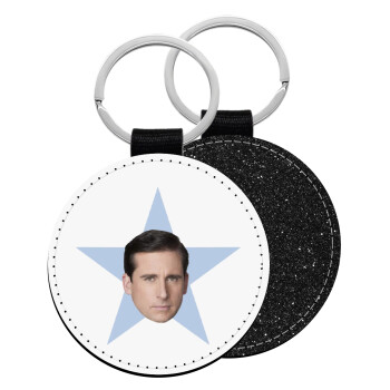 michael the office star, Μπρελόκ Δερματίνη, στρογγυλό ΜΑΥΡΟ (5cm)