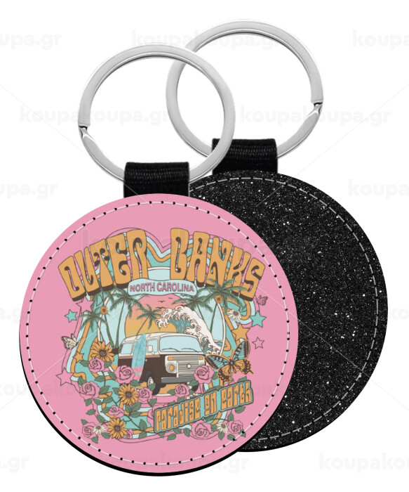 Outerbanks paradise on earth, Μπρελόκ Δερματίνη, στρογγυλό ΜΑΥΡΟ (5cm)
