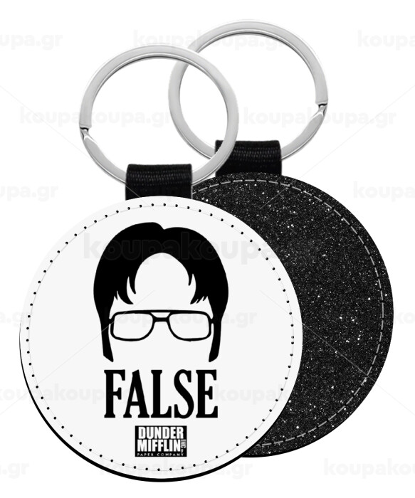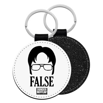 The office Dwight false, Μπρελόκ Δερματίνη, στρογγυλό ΜΑΥΡΟ (5cm)