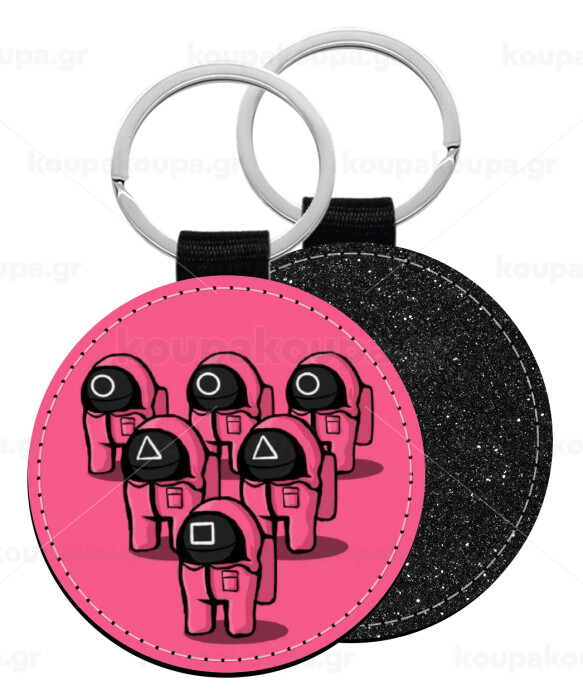 The squid game among us, Μπρελόκ Δερματίνη, στρογγυλό ΜΑΥΡΟ (5cm)