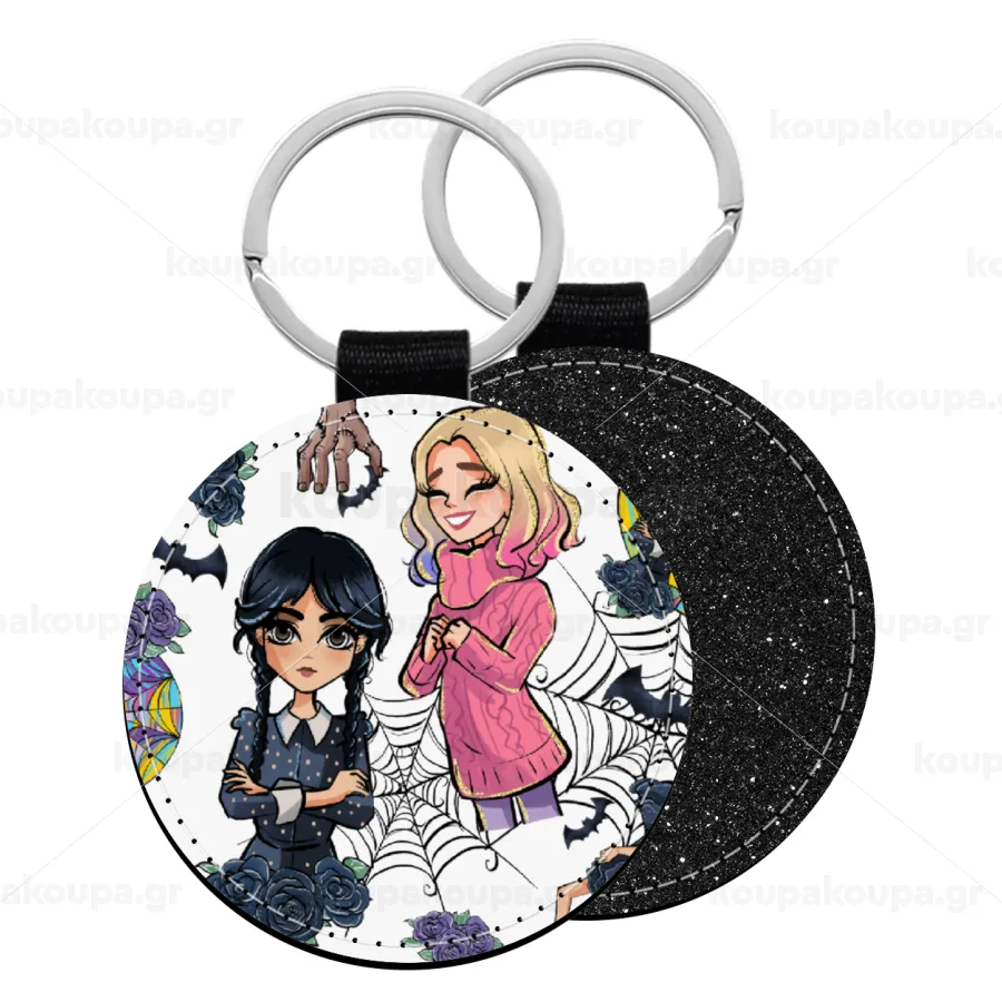 Wednesday and Enid Sinclair, Μπρελόκ Δερματίνη, στρογγυλό ΜΑΥΡΟ (5cm)