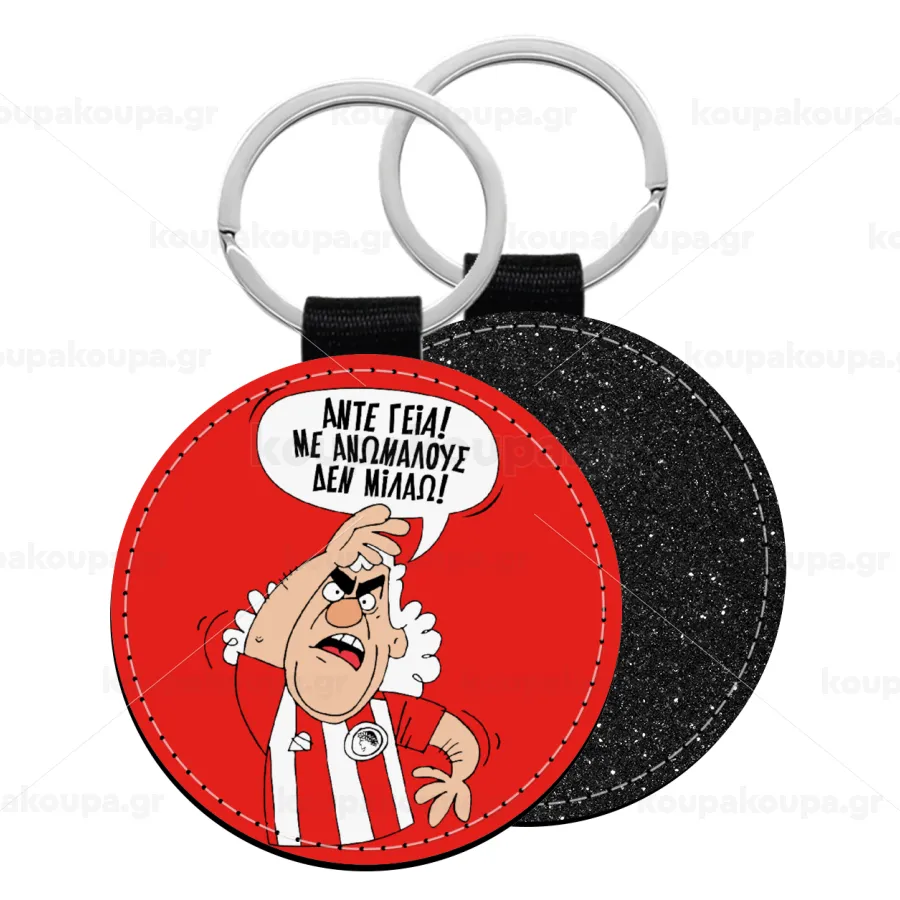 Τάκης, Άντε γεια, με ανώμαλους δεν μιλάω!, Μπρελόκ Δερματίνη, στρογγυλό ΜΑΥΡΟ (5cm)