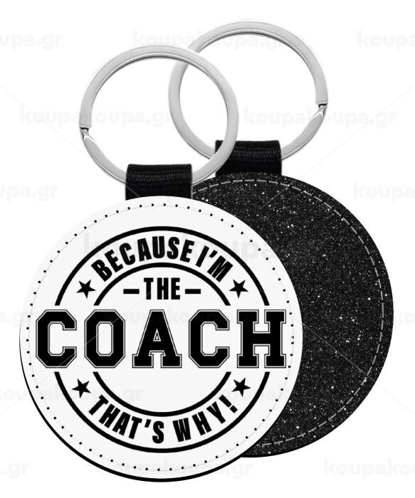 Because i'm the Coach, Μπρελόκ Δερματίνη, στρογγυλό ΜΑΥΡΟ (5cm)