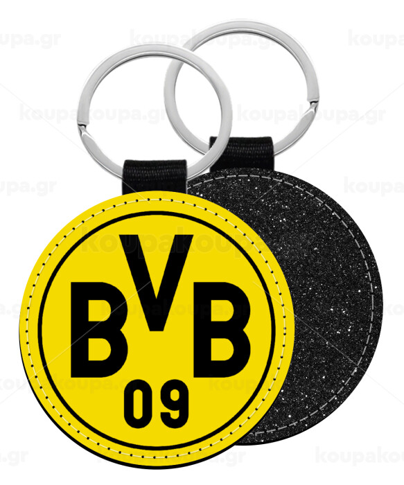BVB Dortmund, Μπρελόκ Δερματίνη, στρογγυλό ΜΑΥΡΟ (5cm)