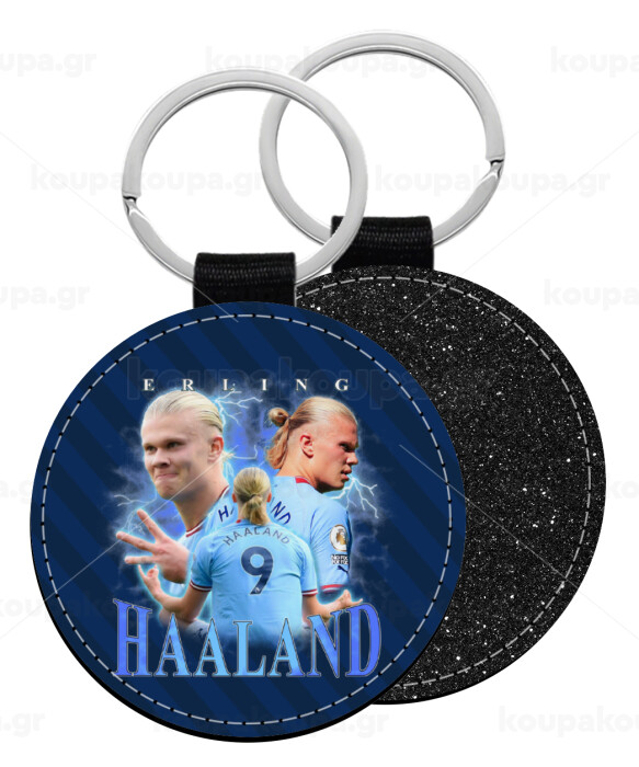 Erling Haaland, Μπρελόκ Δερματίνη, στρογγυλό ΜΑΥΡΟ (5cm)