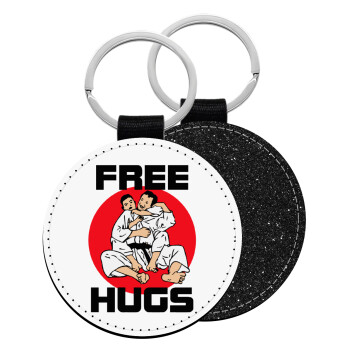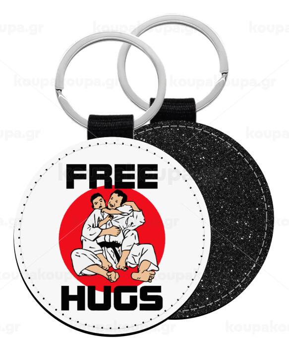 JUDO free hugs, Μπρελόκ Δερματίνη, στρογγυλό ΜΑΥΡΟ (5cm)
