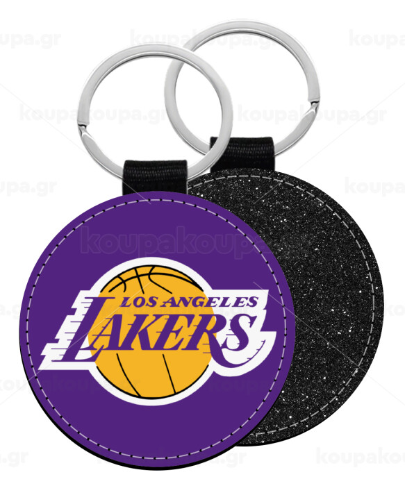 Lakers, Μπρελόκ Δερματίνη, στρογγυλό ΜΑΥΡΟ (5cm)