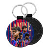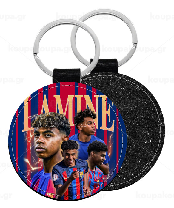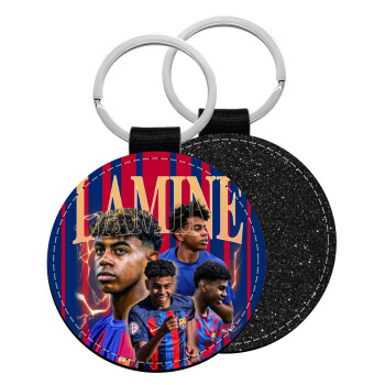 lamine yamal FCB, Μπρελόκ Δερματίνη, στρογγυλό ΜΑΥΡΟ (5cm)