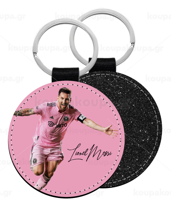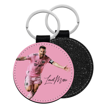 Lionel Messi inter miami jersey, Μπρελόκ Δερματίνη, στρογγυλό ΜΑΥΡΟ (5cm)