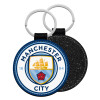 Manchester City FC , Μπρελόκ Δερματίνη, στρογγυλό ΜΑΥΡΟ (5cm)