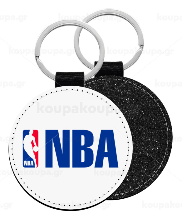 NBA, Μπρελόκ Δερματίνη, στρογγυλό ΜΑΥΡΟ (5cm)