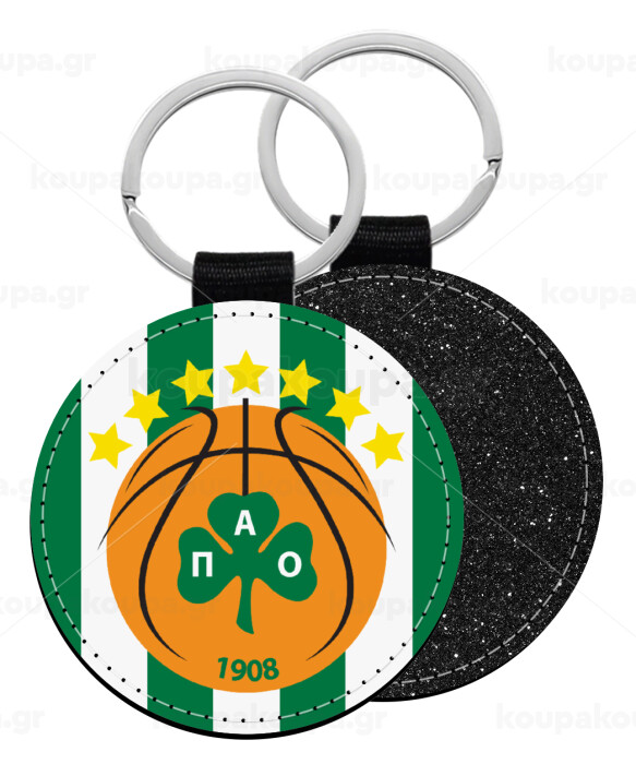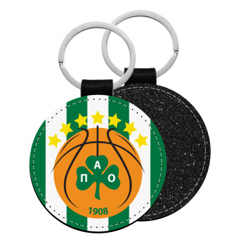 PAO BC, Μπρελόκ Δερματίνη, στρογγυλό ΜΑΥΡΟ (5cm)