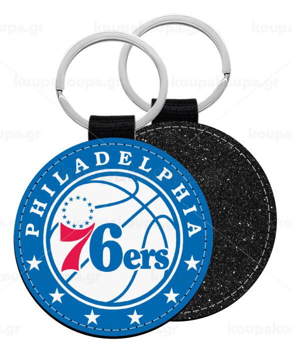 Philadelphia 76ers, Μπρελόκ Δερματίνη, στρογγυλό ΜΑΥΡΟ (5cm)