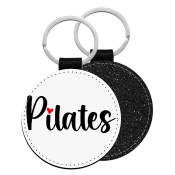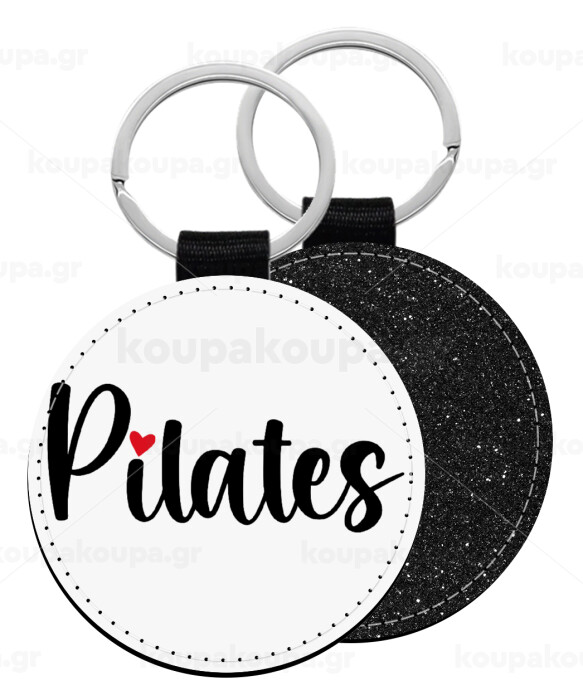 Pilates love, Μπρελόκ Δερματίνη, στρογγυλό ΜΑΥΡΟ (5cm)