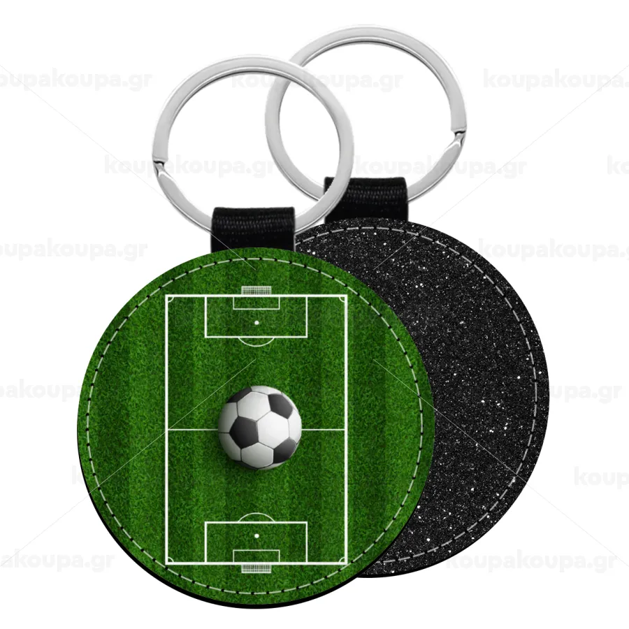 Soccer field, Γήπεδο ποδοσφαίρου, Μπρελόκ Δερματίνη, στρογγυλό ΜΑΥΡΟ (5cm)