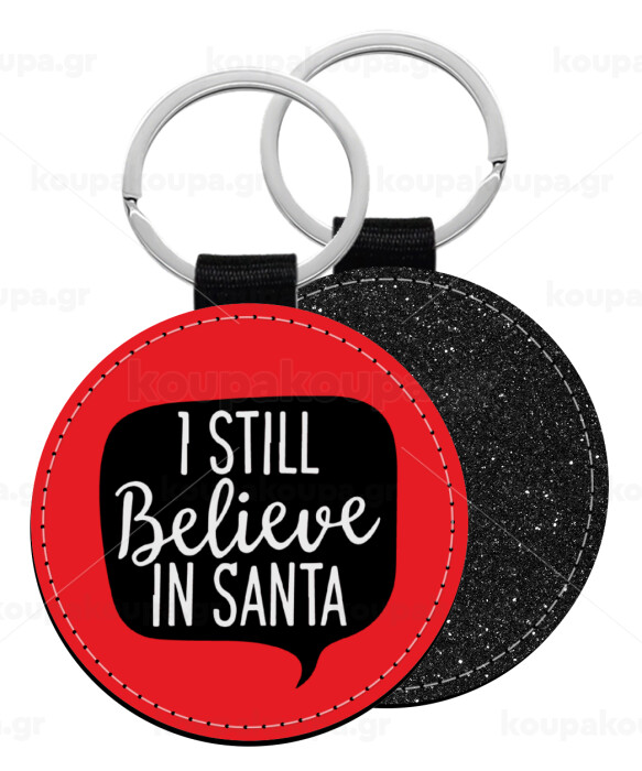Ι still believe in santa, Μπρελόκ Δερματίνη, στρογγυλό ΜΑΥΡΟ (5cm)