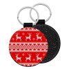 Deer knitted, Μπρελόκ Δερματίνη, στρογγυλό ΜΑΥΡΟ (5cm)