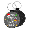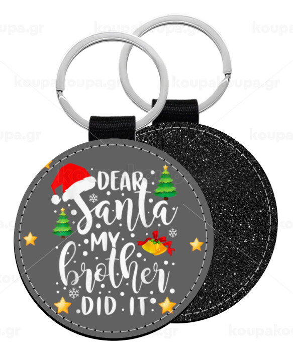 Dear santa my Brother did it, Μπρελόκ Δερματίνη, στρογγυλό ΜΑΥΡΟ (5cm)