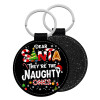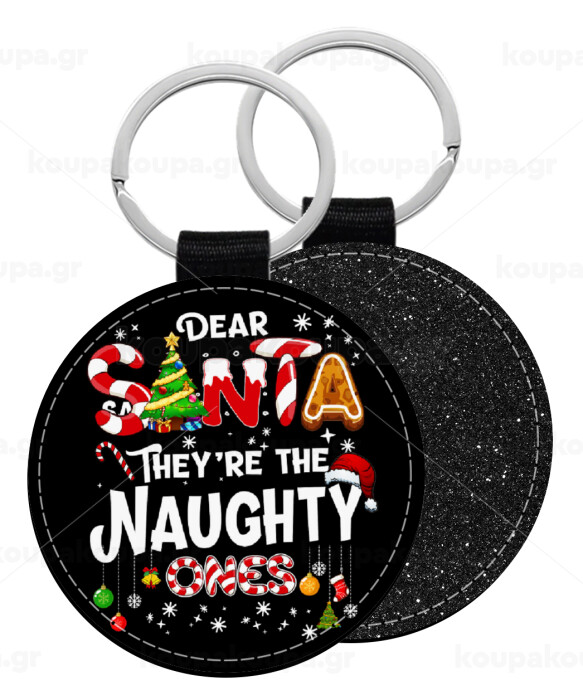 Dear santa they're the naughty , Μπρελόκ Δερματίνη, στρογγυλό ΜΑΥΡΟ (5cm)